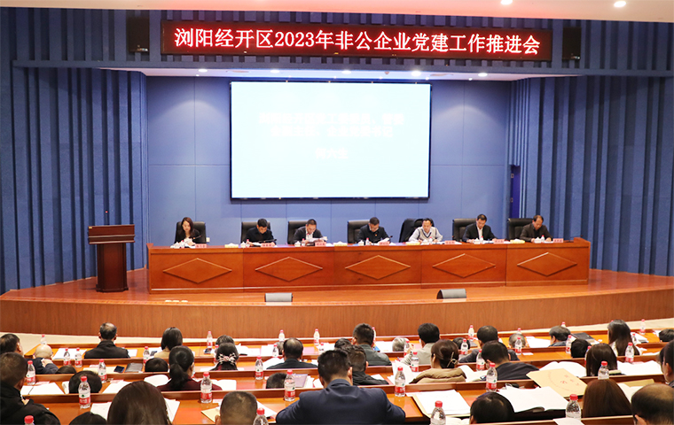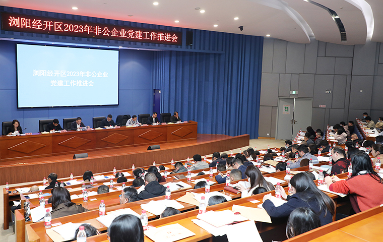 浏阳经开区党工委委员、管委会副主任、企业党委书记何六生作工作报告。2023年,园区非公企业党建工作的总体要求是:坚持以党的二十大精神为指引,全面学习贯彻习近平新时代中国特色社会主义思想,落实健全全面从严治党体系任务要求,以“党建聚合力”工程为统揽,坚持“围绕发展抓党建,抓好党建促发展”不动摇,不断提升非公党建工作的质量和绩效,助推民营企业健康发展、民营企业家健康成长,助推非公企业在践行“三高四新”战略定位和使命任务、奋力实施强省会战略、创建“五好”园区中贡献更大力量。