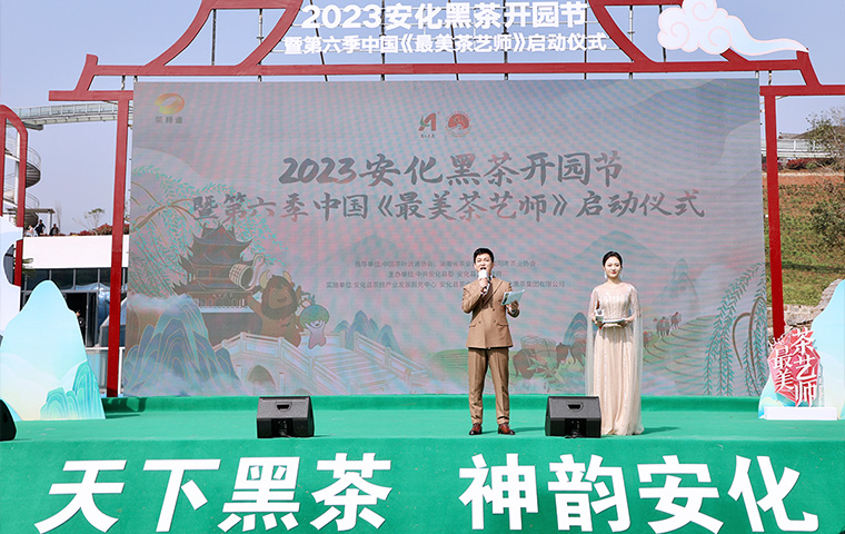 中国茶叶流通协会会长、全国茶叶标准化技术委员会主任委员王庆,中国工程院院士、湖南农业大学学术委员会主任刘仲华分别对2023安化黑茶开园节暨第六季中国《最美茶艺师》活动的成功举办致以美好祝愿。活动现场还发布了2022年十大事件及2023年安化黑茶产业发展关键词。随后,与会嘉宾一同上台,共同启动第六季中国《最美茶艺师》。