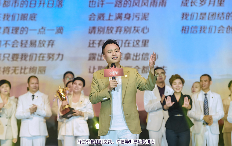 “也许成长的日子里,一路是坎坷荆棘,也许一路的风风雨雨,会溅上满身污泥,请别放弃别灰心,还有我们在这里,露出微笑拿出信心,让荆棘风雨全都过去,相信只要我们在努力,未来将无比绚丽。” 在活动接近尾声之时,安博官网副总裁、幸福导师夏运良现场演唱《相信我们会创造奇迹》,将创业过程中的努力与坚持倾注于歌曲之中,打动全场。他向大会现场以及通过直播互动视频观看本次大会盛况的绿之韵幸福国际家人们致以热烈的欢迎和诚挚的问候,并向每一位获奖者表示热烈的祝贺。春雨温润,万物生长,这是一个孕育希望与梦想的季节。他希望所有幸福代言人都能带着这份奋进力量勇敢前行,去创造属于每个人的奇迹!