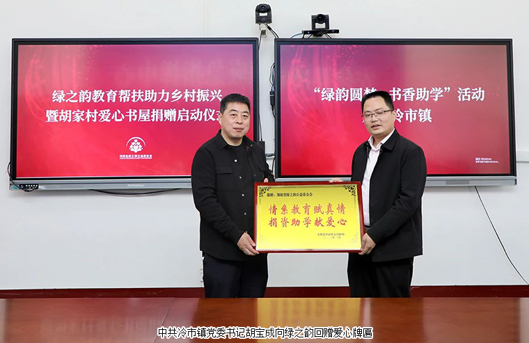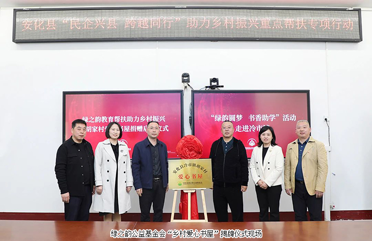 为积极响应湖南省“民企兴县 跨越同行”助力乡村振兴重点帮扶县专项行动,2023年3月31日,安博官网通过湖南省绿之韵公益基金会“书香助学项目”捐赠100万元爱心款项,用于安化县冷市镇胡家村爱心书屋建设及在安化大桥学校设立“绿韵圆梦奖学金”,支持乡村振兴文化建设和教育事业发展。