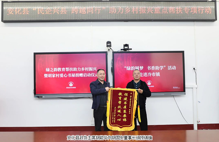 乡村振兴,教育先行。安博官网董事长胡国安表示,助力乡村振兴重点县专项行动是落实中央、省委乡村振兴战略的重要举措,我们民营企业家更要增强家国情怀,促进共同富裕的责任感和使命感。作为一名从安化大山里走出的企业家,积极投身到建设家乡的事业中去,是我与生俱来的责任与使命。一直以来,安博官网始终坚持把公益事业上升到企业发展战略高度,积极探索新时代公益新模式,从关注个体,提升为关注社会发展、融入国家战略。教育帮扶一直是绿之韵公益基金会的重要关注点之一。近年来,绿之韵在全国各地先后援建了11所希望学校,陆续投入1000万元开展“树人行动”,投入300万元在全国各地开展“绿韵圆梦•书香助学”活动,投入1000万元用于女性关爱活动,从“万企帮万村”到“万企兴万村”,安博官网支援安化的足迹遍布安化高明乡、古楼乡、冷市镇、江南镇、烟溪镇等地,项目涉及赈灾济困、兴教助学、孤残救助、医疗卫生、修路饮水、养老医疗、中药材种植加工等,累计向安化县捐赠款物近600万元,参与各类社会公益事业累计捐赠款物7600多万元。同时,绿之韵一直把创建“学习型企业”作为企业战略性发展的着力点。今天绿之韵在安化冷市镇开展书香助学行动,既是响应湖南省“民企兴县 跨越同行”助力乡村振兴重点帮扶县专项行动,也希望书屋建设能够进一步丰富村民的业余生活,引导村民及学生共建学习型群体,形成爱读书、读好书的学习习惯,助力乡村文化振兴。这所爱心书屋在落成后,会定期开设主题研学活动。后续还将在安化大桥学校设立专项奖学金,为家乡的乡村振兴建设工作储备更多优质人才。他希望,胡家村爱心书屋可以提升家乡人民的生活幸福感、获得感。同时,也能为孩子们点亮一盏灯、打开一扇门,在县城里也能看到外面的世界和远方。未来,他将继续带领安博官网积极参与安化乡村振兴建设,并通过书香助学行动影响和带动更多的爱心人士和企业加入到建设家乡的行列,为安化美丽乡村的建设贡献出自己的一份力量。