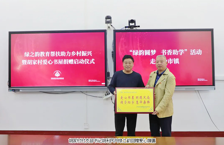 捐赠仪式由安化县人大常委会副主任李艳云主持。活动伊始,中共冷市镇党委书记胡宝成致辞。他首先向绿之韵公益基金会的爱心之举表示衷心的感谢。他表示,文化振兴是乡村振兴的重要推手,教育工作是最大的民生工程,需要更多的爱心企业、爱心人士热心参与。此次捐赠活动,不仅体现了绿之韵心系教育事业、基层文化建设和勇担社会责任的良好形象,更将有力呼吁各级组织、广大党员干部,在建设美丽乡村、致力乡村振兴中更好发挥引领带动作用,引导青少年们弘扬中华民族的优秀文化,丰富自身技能,为乡村振兴作出更大的贡献。随后,胡均安副总裁代表绿之韵捐赠100万元爱心支票,中共冷市镇党委书记胡宝成、胡家村村支部书记胡利民向安博官网回赠爱心牌匾。与会领导现场共同为爱心书屋揭牌并为优秀学生代表现场发放奖学金。