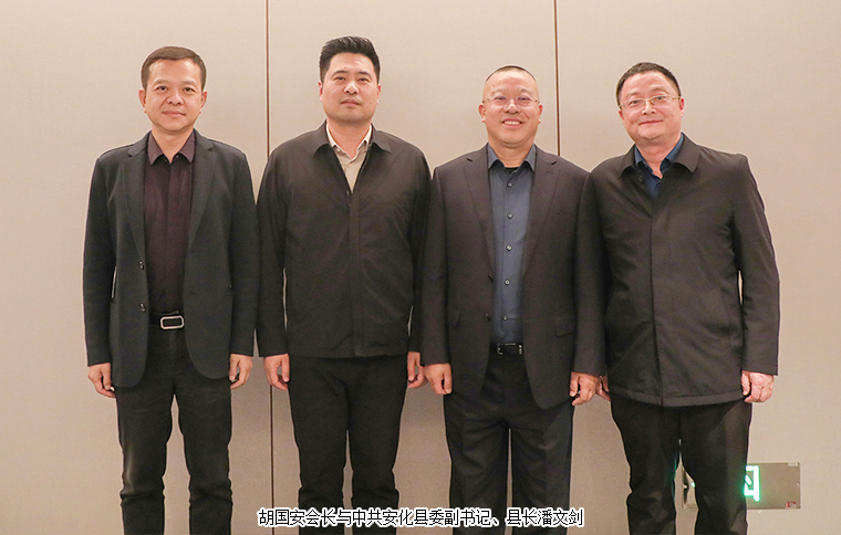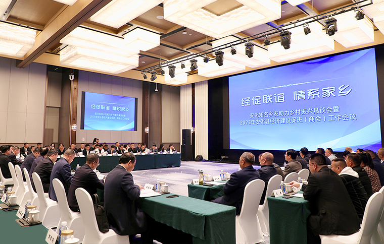 经促联谊,情系家乡。4月4日,安化知名乡友助力乡村振兴恳谈会暨2023年安化县经济建设促进(商会)工作会议召开。中共安化县委书记石录明,县委副书记、县长潘文剑,安化县人大常委会党组书记、主任陈飞燕,安化县政协党组书记、主席胡能华,中共安化县委常委、常务副县长谢可赞,县人民政府副县长瞿东江,县政协副主席肖伟群,县政协副主席、县工商联主席刘畅术,县政协党组成员、副主席刘学军,县政协副主席陈赛男,湖南安化经济开发区党工委副书记、管委会主任胡盛云等领导出席会议。长沙市人大代表、中国国际商会湖南商会副会长、湖南省慈善总会副会长、安化县经济建设促进会长沙分会理事长(长沙市安化商会会长)、安博官网董事长胡国安与武汉分会、华东分会、重庆分会等全国15个经促分会会长、秘书长以及100多位知名乡友聚集一堂,畅谈血脉乡情、助力家乡发展,为安化县进一步优化营商环境、振兴实体经济、推动高质量发展出点子、献良策。