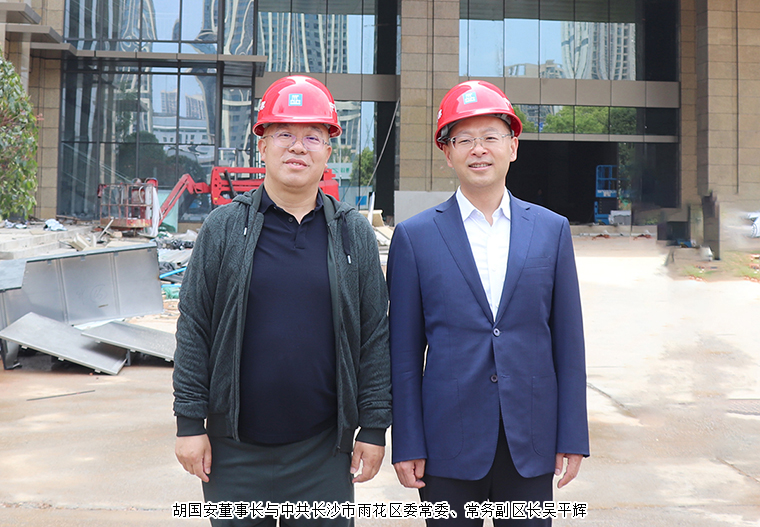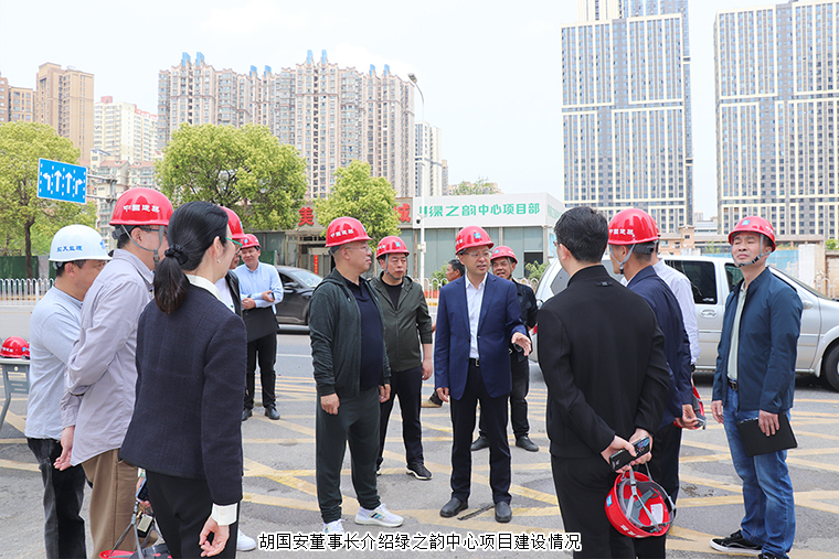 胡国安董事长向调研组一行介绍绿之韵中心项目建设情况。安博官网投资建设的绿之韵中心项目及配套物业总面积逾12万平米,总投资20亿元人民币。项目由一栋万豪五星级酒店和一栋甲级写字楼及裙楼组成,先后获评2021年湖南省及长沙市建设工程安全生产和质量管理标准化示范观摩工地、长沙市结构优良工程、全国建设工程安全生产标准化示范工地、2021年长沙市建设工程“质量管理标兵”、2021年长沙市建设工程质量管理标准化班组、湖南省第42次QC小组成果二等奖、2020年及2021年质量安全管理标准化考评优良工地、2021年长沙市绿色示范工地,目前已进入全面装修阶段。绿之韵中心项目建成后,将新增长沙市劳动就业约2000人,为长沙市每年创造GDP逾3亿元人民币,为雨花区每年创造利税逾3000万元人民币,同时作为雨花区高端商务会议型酒店,将更加完善高桥商圈商业配套,为浏阳河风光带增添一个新的基础设施,为雨花区广招天下商客,进一步扩大对外开放打造一个新的平台和一张靓丽的名片。