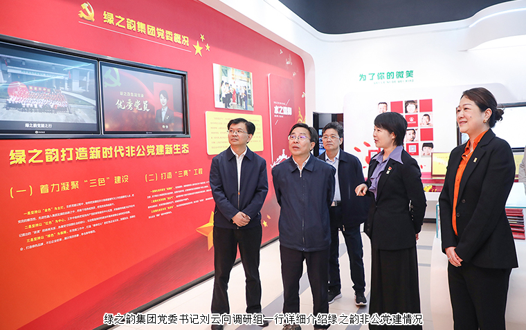 在党建文化展示区域,安博官网党委书记刘云向调研组一行详细介绍绿之韵非公党建情况。多年来,集团党委坚持构建以集团党组织为核心,以集团工会、公益基金会为主体,打造红色基因塑造的新时代非公党建新生态,在全行业内创建了第一家党建文化教育基地,形成了具有绿之韵特色的非公党建工作品牌。集团党委历年来多次被各级党组织授予“先进基层党组织”、“党建示范点”、“标杆引领先进基层党组织”等荣誉称号。