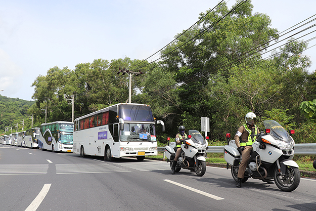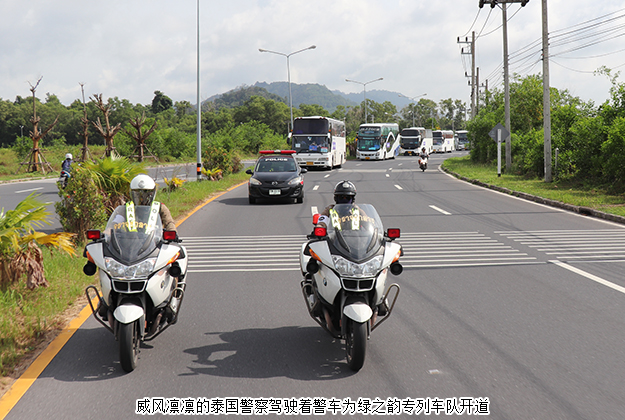 威风凛凛的泰国警察驾驶着警车为绿之韵专列车队开道,一路护送。绿之韵家人前往的皇权免税中心(KING POWER)是泰国最大的免税商场,里面有各种世界名牌手表、化妆品、手袋、衣服,包括泰国最优质的的手工艺品、食品、手信……绿之韵家人在这里买到手软,逛到尽兴。