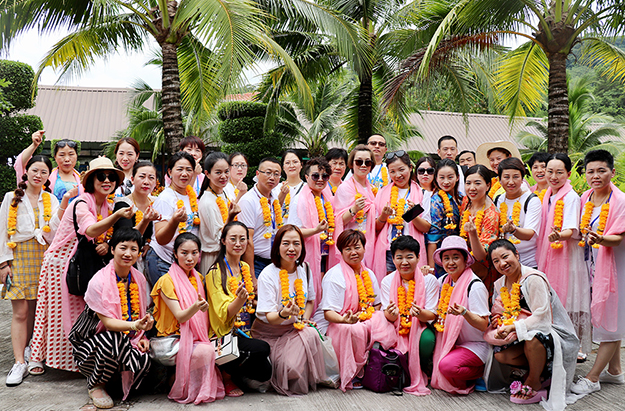 一来到普吉岛,绿之韵家人们就充分感受到了这个热带岛屿的热情,身着民族服饰的泰国少女带着“萨瓦迪卡”的甜美声线为大家献上美丽的花环;走出机场后,乘坐VIP豪华旅游大巴前往酒店,酒店大堂、餐厅、遍处都是欢迎横幅,风情迷人、礼遇奢华。