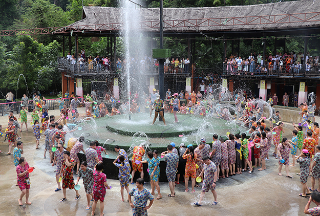 佛吉水舞是泰国最大的泼水狂欢主题活动旅游景区,绿之韵九台豪华旅游大巴载着300名绿之韵营销精英浩浩荡荡包场佛吉水舞当天的泼水节主题活动。绿之韵家人在这里体验宋干文化,参加泼水狂欢,拜佛、浴佛、祈福、观赏泰国的传统舞蹈,感受泰国泼水节带来的开心和快乐。
