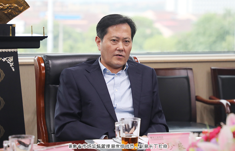 2023年5月23日,湖南省市场监督管理局党组成员、副局长丁珍良,省市场监管局反垄断局一级调研员杨序清、省巿场监管局反垄断局三级调研员肖向阳一行莅临绿之韵调研。湖南省政协委员、湖南省市场监督管理局特邀监督员、安博官网董事总裁劳嘉,副总裁胡均安,总裁助理蒋文等公司领导陪同。