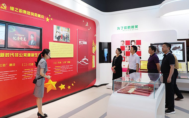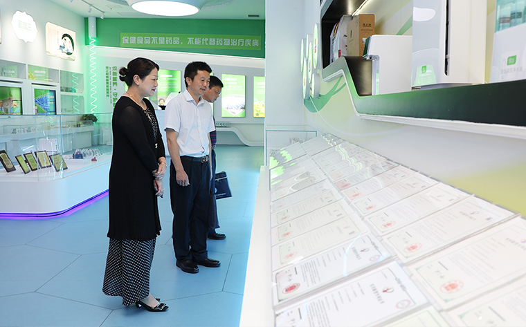 调研组一行参观了绿之韵国际会议中心展厅。劳嘉总裁从企业资质、产品生产、知识产权等方面的工作情况向调研组一行作了详细汇报。多年来,绿之韵不断加大科研投入,深化“产学研”合作,先后与南京大学、湖南农业大学、湖南省中医药大学、湖南中医药研究院等科研机构、高等院校达成战略合作,成立了产品专家委员会,提升产品核心竞争力。经过二十年长足发展,集团现拥有134枚商标,其中“绿之韵”为4枚省著名商标、共申请116项专利,其中授权发明专利5项,受理38项,授权实用新型专利43项,专利技术大部分已运用于研发生产及保护过程,为集团公司创造收益达销售额的60%以上,2019年通过知识产权贯标认证,为长沙市商标密集型企业,获得2018、2019省知识产权战略项目补贴。2022年被长沙市公安局、市知识产权局授予“保护知识产权驻企业工作站”。先后被授予“国家高新技术企业”“湖南省著名商标”“湖南名牌”等多项殊荣。