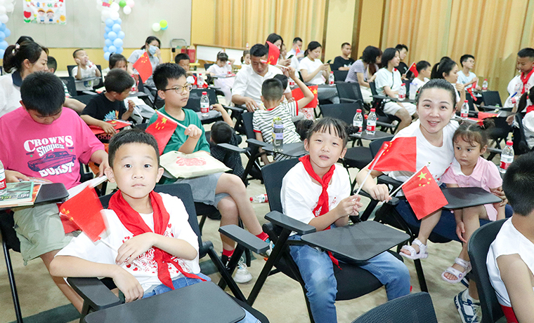 孩子们挥舞小红旗,合唱《少年先锋队队歌》、《没有共产党就没有新中国》,高昂的歌声、动听的旋律,共同感受国家的发展强大;通过聆听少年英雄故事“小兵张嘎”、“小萝卜头”事迹;观看“王二小”话剧;一起跳红色手语舞等,引导孩子们在红色文化教育影响下,传承红色基因,积极阳光地走好童年每一步,做勇敢、坚强、上进的新一代。现场还组织小朋友们观看了防溺水宣传教育视频,以寓教于乐、生动形象的动画向孩子们传授了自防自救知识,在防溺水知识抢答环节,孩子们积极参与,气氛十分热烈,纷纷表示,在此次活动中受益匪浅,日后将一定会牢记安全要点。
