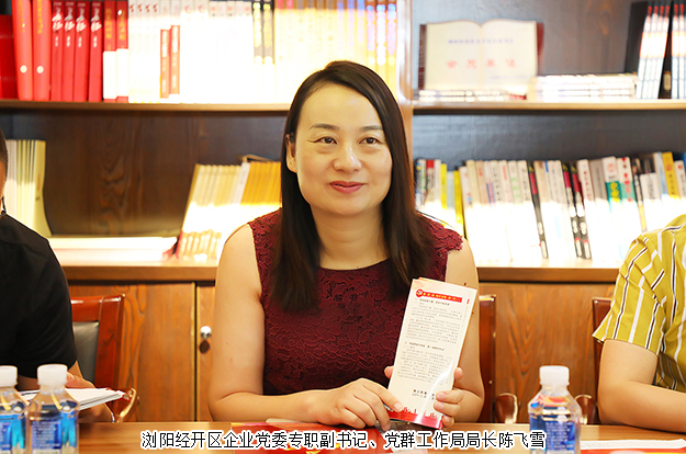 浏阳经开区企业党委专职副书记、党群工作局局长陈飞雪详细介绍了园区的企业类型,并就非公企业如何开展党建工作进行了深入的交流。她表示,党建工作的成果与企业的经济效益是成正比的,紧抓党建的做法对企业的发展能起到很好的促进作用。非公企业在党建工作的开展中要充分发挥党组织的政治引领作用,以党建带动群建、工建、妇建、团建等全盘组织建设;要坚持“以人为本”的理念,让员工在企业得到归属感和幸福感,精神上的关爱往往比物质上的奖励更能留住人才。她希望,今后经开区与望城区能多多加强党建方面的沟通与交流,相互学习、共同积累优秀的党建工作经验,让党建成为推动企业发展的动力源泉,为省市经济社会发展作出更大贡献!