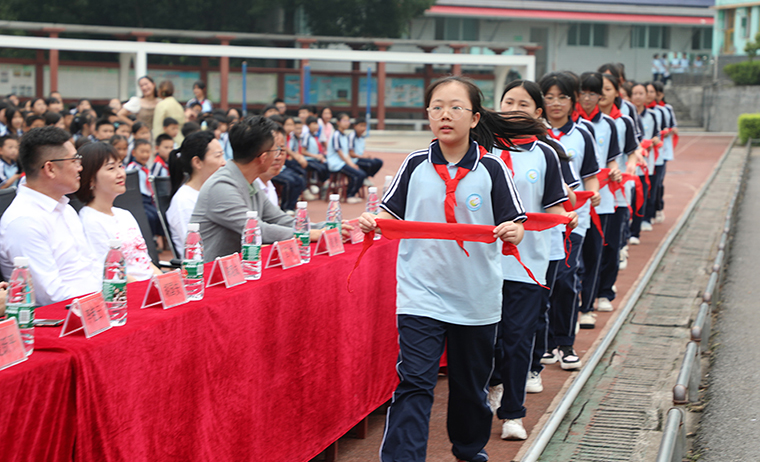 仪式开始前,领导嘉宾实地参观了学校基础设施建设及办学条件,3名不同年级的学生代表作为小小讲解员,从学校文化长廊到校史长廊条理清晰地为嘉宾们讲述大桥学校办学历史和办学特色。活动伊始,少先队员代表为到场嘉宾佩戴红领巾,行队礼,用最质朴的行动向所有爱心人士表达最真挚的感谢。
