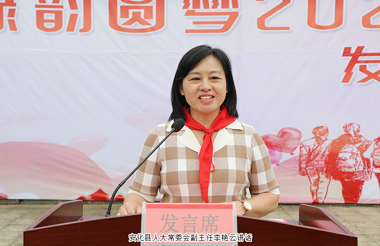活动最后,安化县人大常委会副主任李艳云讲话。她首先代表安化县委、县政府向胡国安董事长及公益团队表示崇高的敬意和衷心的感谢。她表示,捐资助学、尊师重教是社会的伟统美德。胡国安董事长作为从安化走出去的优秀知名企业家代表,是慈善大爱的楷模。长期以来情系家乡,在爱心奉献、回报桑梓的公益道路上一直不遗余力、竭尽所能,从建桥修路、精准扶贫到脱贫攻坚,从产业帮扶、爱心助学到乡村振兴等无不体现了一位企业家高度的社会责任感和使命感。此次“绿韵圆梦奖教奖学金”的颁发,也必将激发全体教师更大的工作热情,更好地授业解惑,爱岗敬业,教书育人;激励全体学生更加努力拼搏,立志成才,奋发向上。必将影响和带动社会各界来关注、支持家乡的教育工作,关注、支持家乡的发展和建设。她希望,同学们继续保持品学兼优的品行,树立远大理想,刻苦学习,努力奋斗;常怀感恩之心去学习和工作,常念感激之情去做事和做人,牢记安博官网、社会、国家的教育和帮助,用实际行动去回馈社会、感恩社会;希望“绿韵圆梦”奖教奖学金规范管理,科学运作,让大桥学校更多优秀的教师和学生得到嘉奖,得到鼓励,最大限度地发挥奖教奖学的效应。她呼吁,希望有更多的社会爱心人士像胡国安董事长这样,以实际行动关心支持教育事业的发展,关爱激励青少年的成长。