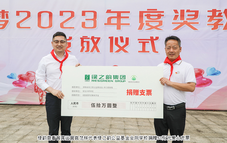 心之所向,行之所往,心中有光,何惧路长。2023年6月15日,“绿韵圆梦奖教奖学金”发放仪式活动走进安化大桥学校。湖南省绿之韵公益基金会“绿韵圆梦行动”捐赠50万元爱心资金在安化大桥学校设立“奖教奖学金”,每年向学校捐赠10万元开展奖学奖教活动,支持乡村振兴建设和教育事业发展。