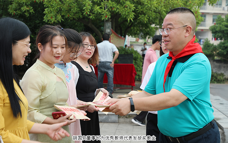 “时隔几十年,今天我再次光荣的戴上鲜艳的红领巾,心情很激动,有了不一样的认知,此时的身份不再是学生,更多的是一份责任和担当。”安博官网董事长胡国安深情地说,今天看到这么多优秀的老师、学生代表,仿佛回到了儿时,那个从安化大山里走出的小孩闯南走北最终回到故乡,有机会回报家乡,回报父母,回报母校,这是一件多么的幸福和荣耀的事情。他表示,少年强则国强,青少年是祖国的希望与未来。教育帮扶一直是绿之韵公益基金会的重要关注点之一。今天在安化大桥学校设立专项奖学金,给予那些品学兼优的学生和辛苦耕耘的老师更多鼓励和学习的机会,希望获得鼓励的优秀师生代表可以坚定理想信念,树立远大抱负,把这份殷殷爱心转化为成才之志、奋发之源,在建设家乡、投身乡村振兴、回报国家的生动实践中放飞青春梦想。捐资助学是一份爱心,回报桑梓是一份乡情,返乡创业是一种责任。今天在现场所有的老师、同学们也是未来安化的人才和栋梁,他希望每一个走出安化的人都可以不忘家乡养育之恩,大力支持家乡各项事业发展,为建设新时代高质量、富饶美丽的安化贡献一份力量。