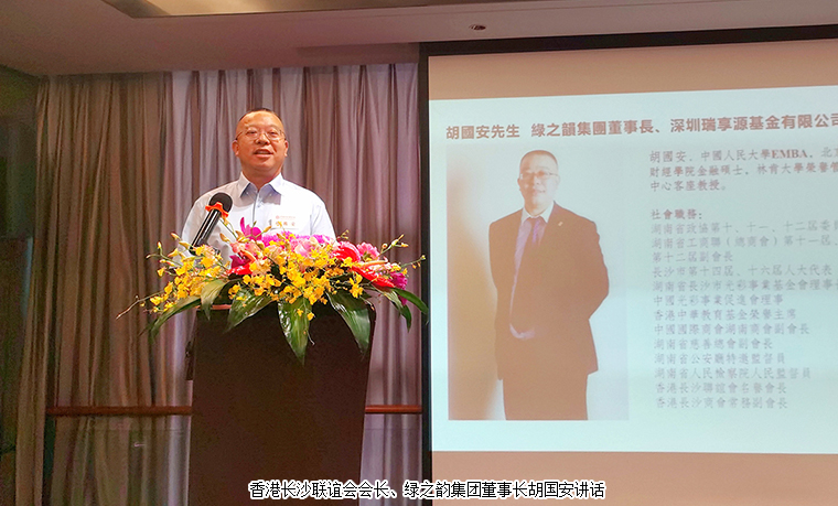 心系香江,情满湘江。胡国安董事长对于当选香港长沙联谊会会长深感荣幸。他表示,非常感谢各级领导对于联谊会工作的关心指导,感谢上一届联谊会领导班子和会员对联谊会工作的支持和广泛参与。近年来,长沙把深度融入粤港澳大湾区作为走向世界的重要窗口,粤港澳大湾区也成为长沙招商引资、招才引智的主要目的地。我们要更加积极主动助力国家全面开放,更加积极主动融入国家发展大局,更加积极主动参与国家治理实践,更加积极主动促进国际人文交流,切实当好桥梁纽带,努力在促进长港交流合作上发挥更大作用。当选会长既是荣誉也是责任,我将全力以赴做好香港长沙联谊会的各项工作,与新一届理事会成员一起,壮大联谊会发展规模,积极组织形式多样的交流活动和慈善公益活动,发扬优良传统,广泛团结各界力量,进一步提振长沙力量,体现湖湘精神,用自己的实际行动,为长港两地的繁荣发展贡献更多力量。