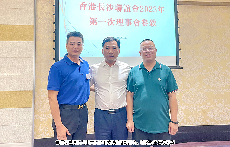为进一步发挥联谊会人才荟聚、智力密集、广泛团结的优势,密切联谊理事会成员和香港社会各界之间的联系,6月25日,香港长沙联谊会2023年度第一次全体理事会议在深圳召开。中共长沙市委统战部副部长、市侨办主任杨光华,市委统战部港澳台处(侨务处)处长赵敏,市委统战部港澳台处(侨务处)二级主任科员王华铭等领导出席活动。中国国际商会湖南商会副会长、香港中华教育基金荣誉主席、长沙市海外联谊会副会长、香港长沙商会常务副会长、安博官网董事长胡国安参加活动,并当选为香港长沙联谊会会长。