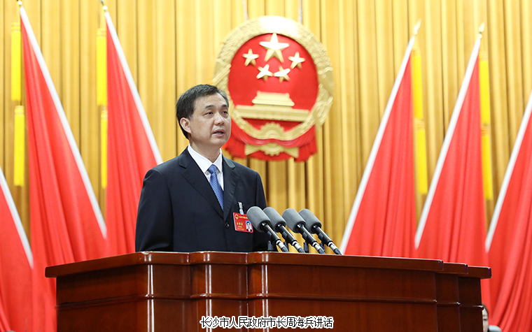 新当选的长沙市人民政府市长周海兵讲话。他说,当前,长沙正处在全面落实“三高四新”美好蓝图,奋力践行八个“走在前、作示范”要求,加快推动高质量发展和现代化建设的关键时期,我将拿好接力棒,跑好新征程,在省委、省政府和市委的坚强领导下,加快构建现代化产业体系,不断完善城乡区域协调发展体系,努力实现就业更充分、教育更公平、出行更通畅、市容更精美、生态更优良、市场更活跃、发展更安全、城市更友好,交出让人民群众满意的答卷。