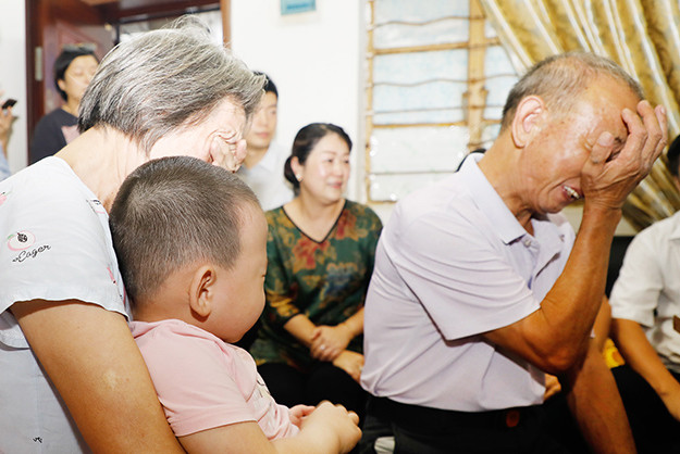 随后,志愿者们为老人播放了潘某录制的视频。两位老人看到儿媳的样子,紧紧抱着孩子不住地抹眼泪。看到这辛酸的一幕,志愿者们安慰老人,再过几个月表现良好潘某就能回家了,到时候一家人就可以团聚。听到家人即将团聚的好消息,老人们紧紧握住志愿者的手,不住地说着谢谢,谢谢……