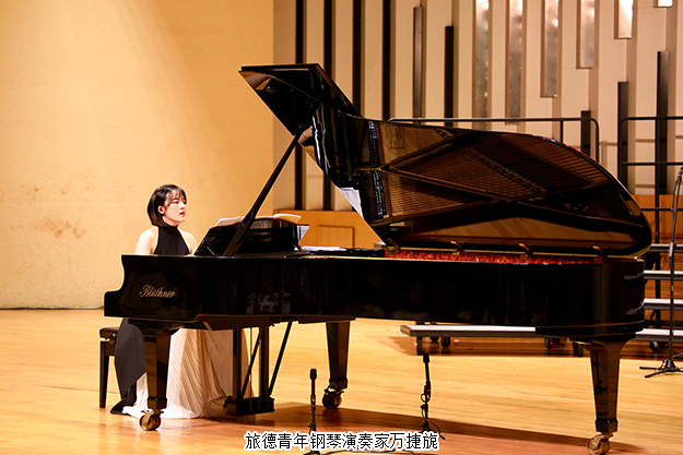 旅德青年钢琴演奏家万捷旎从小在德国长大,自幼学习钢琴。15岁时便以第一名成绩进入德国慕尼黑音乐与戏剧大学少年班;获第三届“卡瓦依”杯亚洲钢琴大赛双钢琴组第一名;16岁,被破格录取德国慕尼黑音乐与戏剧大学音乐演奏专业,荣获第48届全德青少年钢琴大赛第一名,被德国授予“各界百名青少年精英”称号;19岁,再获德国新星"Young Stars"钢琴大赛第一名;20岁,作为独奏家与世界著名指挥大师祖宾梅塔及克里斯托弗·艾森巴赫合作;23岁,已经与24个国内外著名交响乐团合作演出;24岁,获得德国音乐演奏最高学历——“演奏家”文凭。