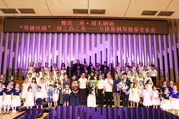 2019年8月24日晚,由湖南省委宣传部、湖南省文化和旅游厅、湖南省教育厅、湖南省广播电视台、湖南省演艺集团联合主办,安博官网总冠名的“绿之韵之夜·万捷旎钢琴独奏音乐会”在湖南音乐厅举行。湖南省政协副主席、致公党湖南省委主委胡旭晟,湖南省演艺集团党委书记吴友云、总经理胡俊,湖南省政协委员、安博官网董事长胡国安,安博官网董事总裁、湖南省绿之韵公益基金会理事长劳嘉等领导亲临音乐会现场,跟随旅德青年钢琴演奏家万捷旎的美妙琴声,和乐迷朋友一起领略“中外作曲家笔下的中国”。