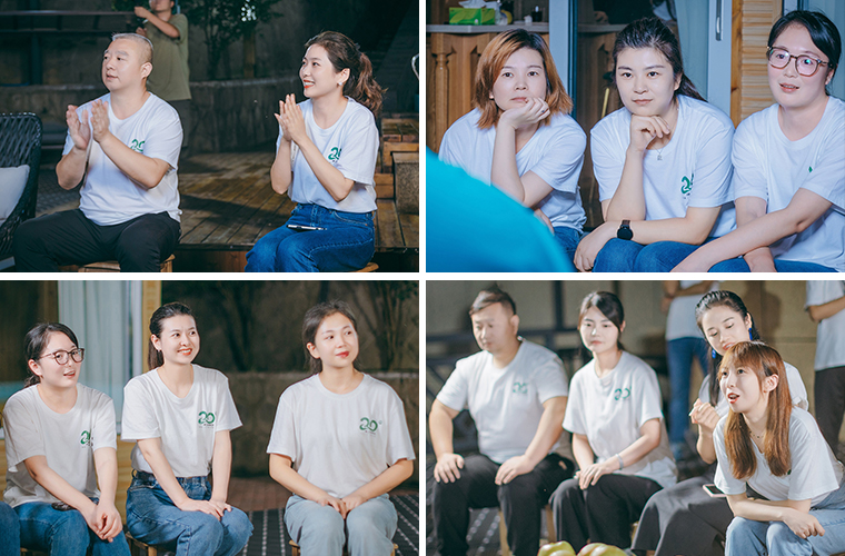 群山环抱的绿韵山庄,伴着潺潺水流声,团团围坐在一起的绿之韵人在星空下齐声唱响20周年主题曲《愿世间所有美好如约而至》,在美妙的旋律中开启了一场围桌夜话。家人们认真倾听胡国安董事长讲述他的创业故事和人生感悟,学习他创新求变、勇于开拓的奋斗精神。大家畅所欲言,现场氛围其乐融融。面对家人们的真诚发问,胡国安董事长笑语盈盈地与大家探讨了当初将水的精神和文化融入企业发展的初衷、创立企业遇到的困难和陪伴至今的合作伙伴、传承绿之韵家文化的意义等话题,也提出了他对绿之韵伙伴们的三个期待,一是希望大家家庭和睦幸福美满,家庭能够给予人足够的内生动力和发展源泉,有小家才能成大家;再是期望每一位绿之韵人都能如水之勇敢、坚韧,一往无前,亦如歌词里所说,你唯一要做的是做更好的自己;最后希望大家在工作和学习中同心协力开拓创新,创造更加美好的绿之韵,愿所有美好如约而至。