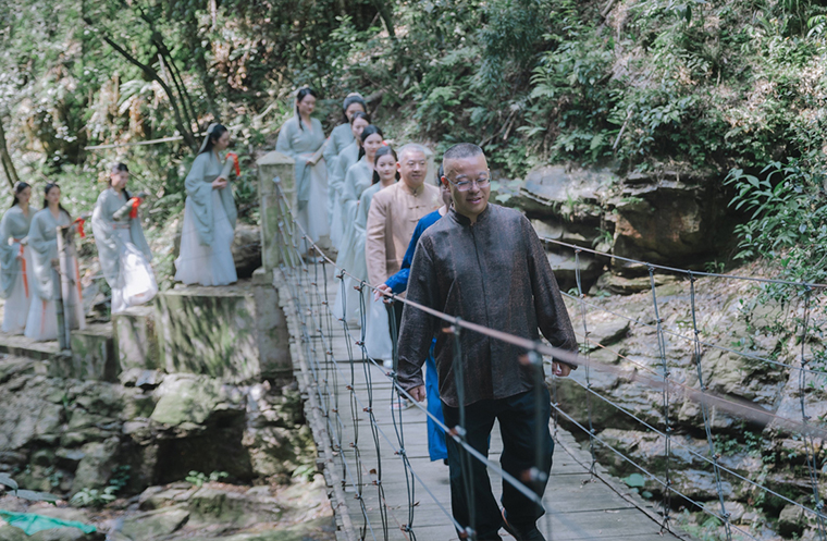“饮水思源,感跋涉维艰;初心不改,唯造化人襄;祈黎庶泰平而烨烨,愿社稷运隆而煌煌;千秋福祉,雅韵恢张;二十而砥,宏业无疆……”随着胡国安董事长宣读完感恩礼辞。九名绿韵仙子缓缓踏水而来,舀取一瓢清澈的溪水。从绿韵仙子手中接过象征着绿之韵源起的源头之水,胡国安董事长将所取之水传递到劳嘉总裁和胡均安常务副总裁手中,寓意美好传承,并将源头之水注入思源坛中,系上祈福红绸并进行封坛。