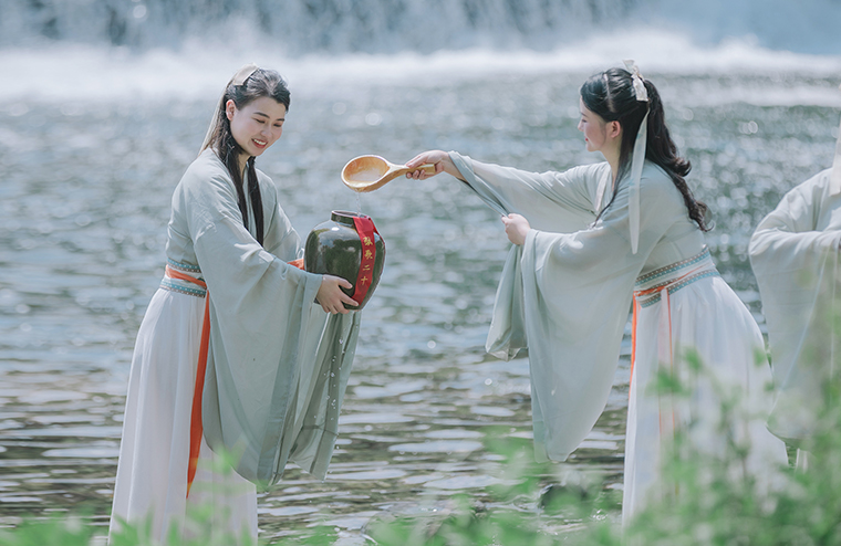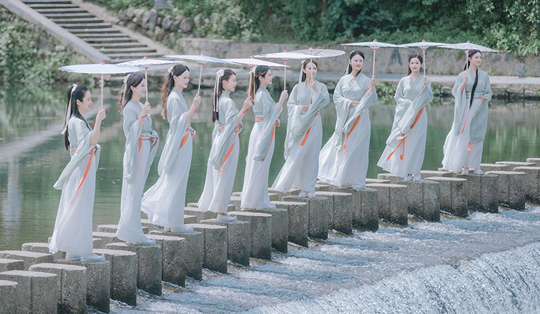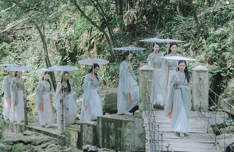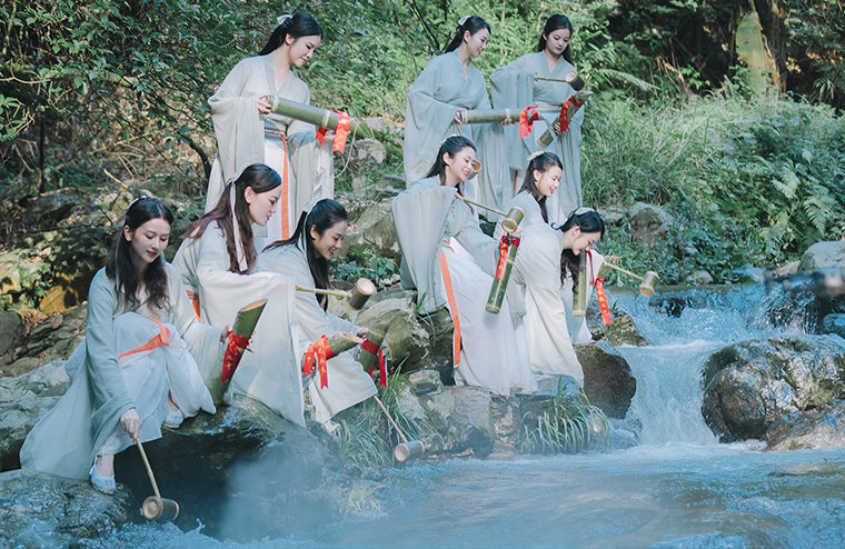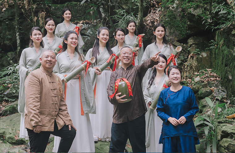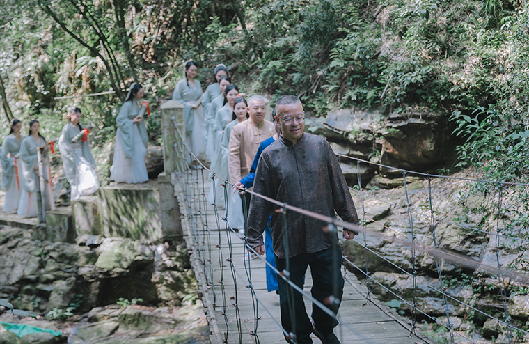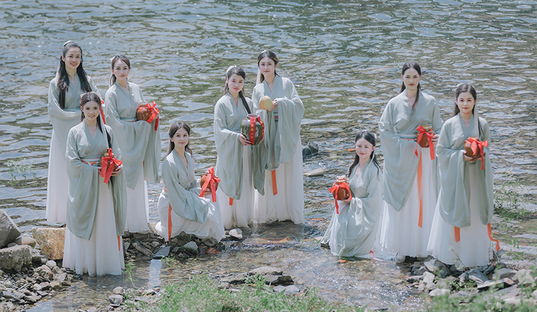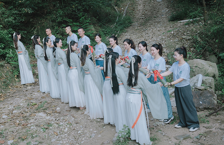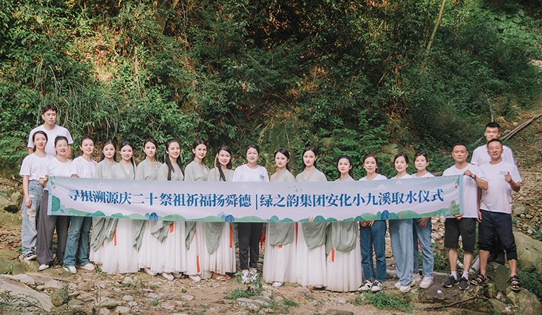 胡国安董事长带领管理团队及9位绿韵仙子款款而行、踏水而来
