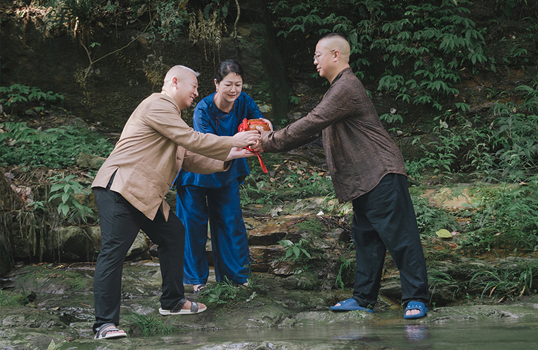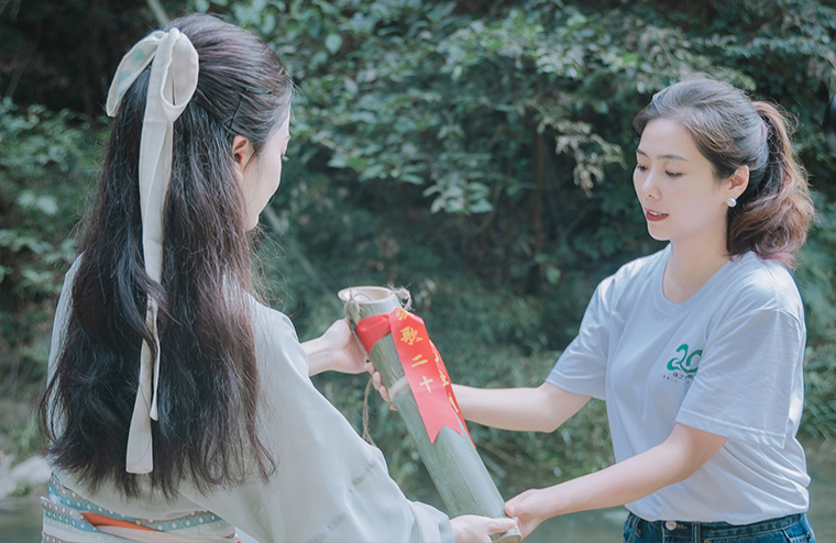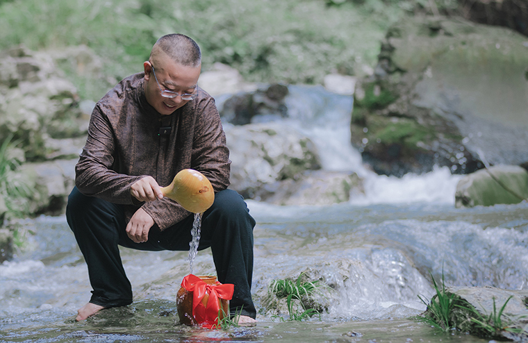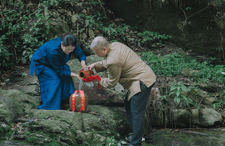 将第一坛小九溪源头之水传递于劳嘉总裁、胡均安常务副总裁