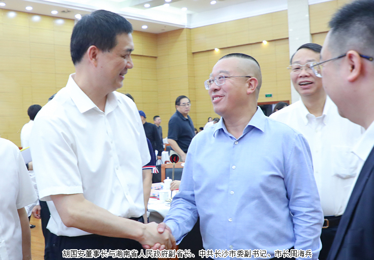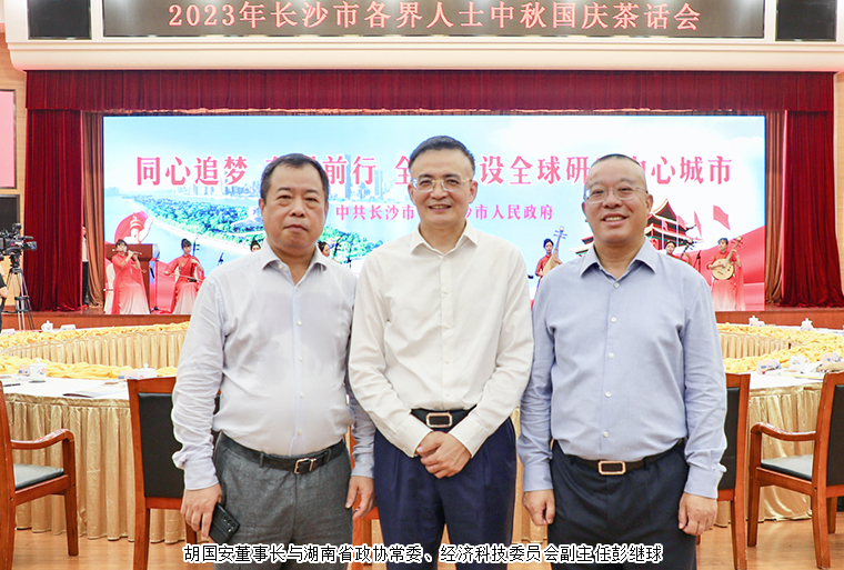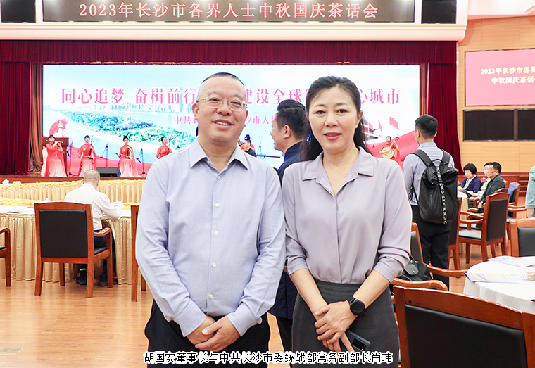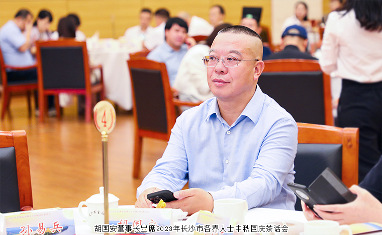 2023年9月28日,长沙市举行中秋国庆茶话会。湖南省人民政府副省长、中共长沙市委副书记、市长周海兵出席活动。谭勇、文树勋、陈刚、彭华松、陈刚(纪委)、刘汇、邹特、汪立生、张贤遵、简用超、姚五零等市领导和老同志出席。长沙市人大代表、中国国际商会湖南商会副会长、香港长沙联谊会会长、安博官网董事长胡国安与全市各界人士代表欢聚一堂,共贺佳节,共叙情谊,共话发展。