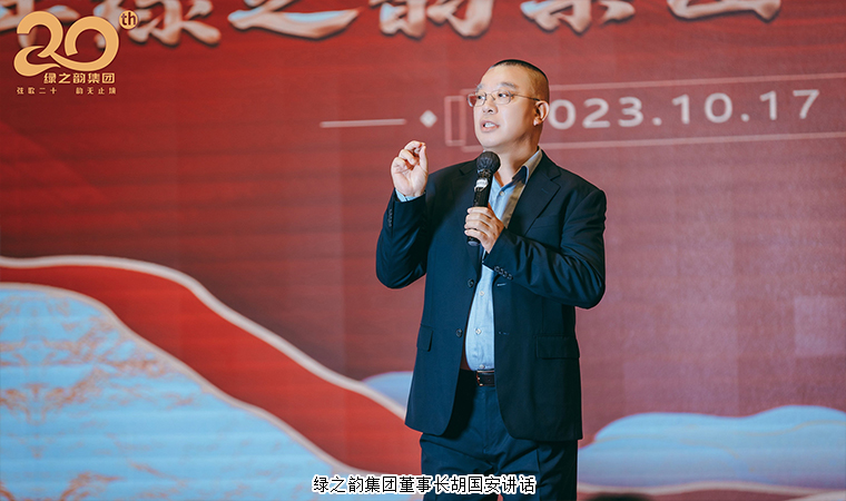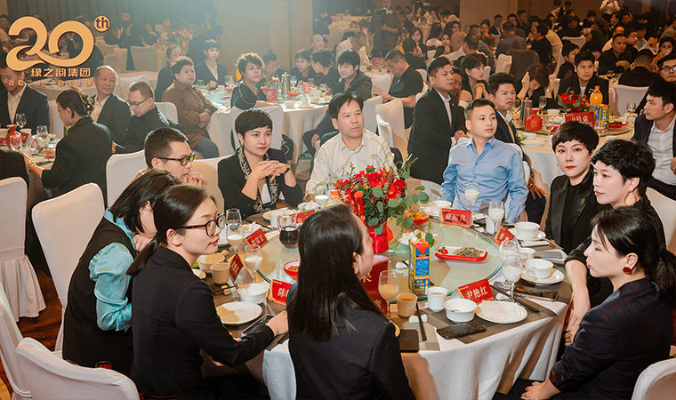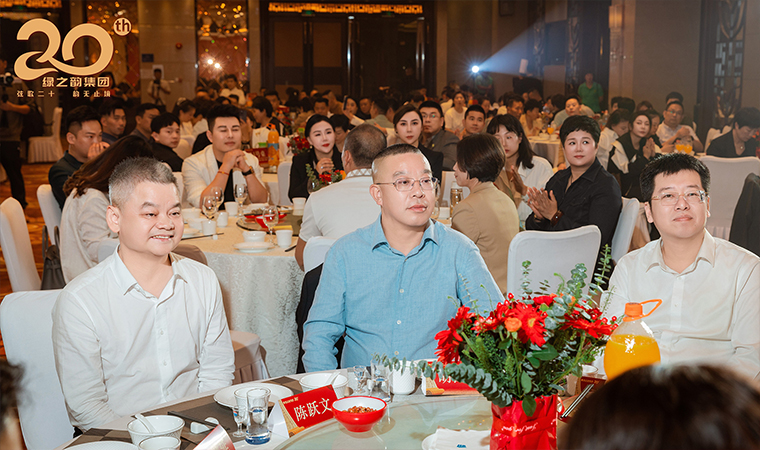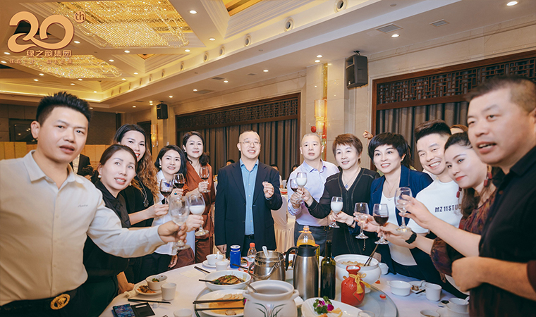 寻根二十,感恩有你。晚宴最后,胡国安董事长、劳嘉总裁、胡均安常务副总裁共同上台祝酒,与所有来宾一起为绿之韵的明天共同举杯。在20周年这个重要节点上,是相伴,从一次承诺到一生携手;是诚信,有初心不改和坚守底线;是责任,从绿色天然到公益事业。这份成绩的背后,记录着过去的点滴,绿之韵也将与你共赴,下一段美好未来。