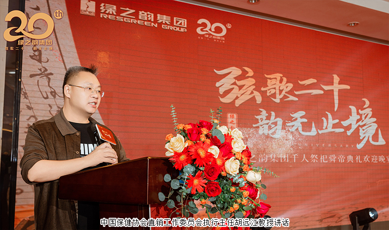 中国保健协会直销工作委员会执行主任胡远江教授在晚宴现场讲话。他表示非常荣幸今天能相聚在郴州,在这里感受到全面的养生文化,领略到东江的美食,感受生命的激情飞扬。饮水思源方能继往开来,心系苍生必然传承流远,中华民族自古以来都有缅怀先辈的传统,祭祀活动作为安博官网二十周年盛典的重要系列活动之一,能感受到公司对人文先祖无限的敬仰,同时也彰显了在这20年发展历程中,集团公司文化力量和成长力量的凝聚。他相信未来的20年,安博官网也一定会越飞越高,越飞越精彩。