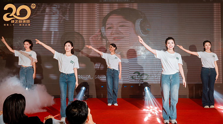 随后,一段安博官网20周年纪念曲《愿世间所有的美好如约而至》现代舞表演为晚宴带来难忘瞬间,绿之韵舞蹈演员穿着有民族特色的服饰,以现代舞穿插手语舞的形式,展现了纪念曲的优美韵律和柔美风情。悠扬的歌声,饱含深情的歌词,将无惧岁月,把握当下,勇敢追逐梦想的绿之韵精神娓娓道来,同时也唱出了所有绿之韵人坚持活出真我,做更好自己的初心。