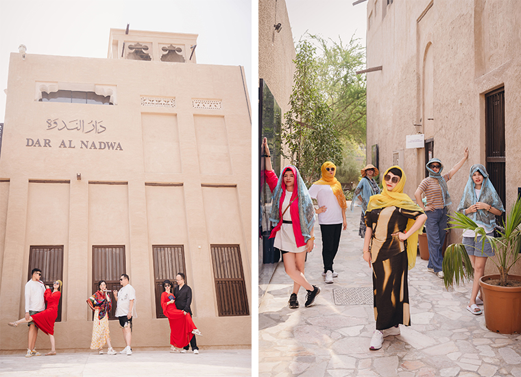 白天的迪拜纸醉金迷。拥有近100年历史的黄金市集是迪拜繁忙的传统市集之一,市集内窄长的小巷如迷宫般交叠,两旁的橱窗陈列着各样黄金珠宝,琳琅满目间颇有异域风情。伊朗小镇是迪拜最古老的遗址之一,是海湾阿拉伯沿岸仅存的风塔建筑群。绿之韵家人们留恋徜徉于小镇,成为了小镇一道亮丽的风景线。