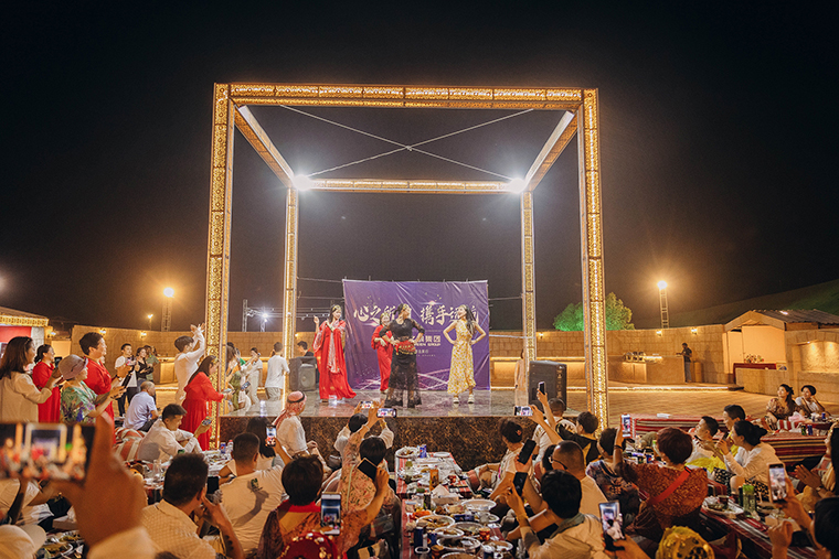 夜幕悄然降临,在具有阿拉伯独特风情的沙漠营地,开启了绿之韵人专属的特色风情晚宴,欣赏独特的阿拉伯音乐和肚皮舞表演,穿着阿拉伯民族服饰拍照,品尝阿拉伯特色的食物,绘制阿拉伯民族手绘,收获生日惊喜……仰望漫天星空,享受全身心的放松与自我。
