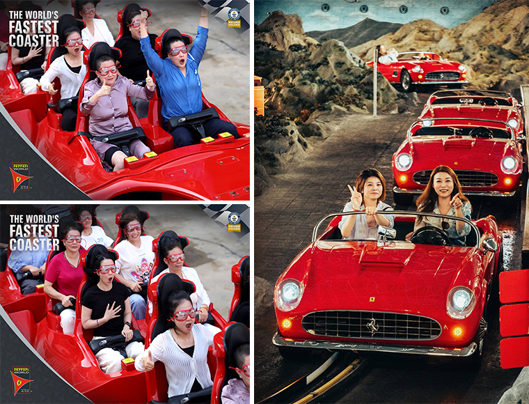 阿布扎比法拉利主题公园是全球唯一的法拉利主题公园,同时也是全球最大的室内主题公园,整个建筑从空中俯瞰如同外星飞碟降落在亚斯岛一般,科幻感十足。乘坐世界上最快的过山车Formula Rossa,绿之韵家人们在52米的空中极速狂飙,感受在4.9 秒内从0加速到240公里/小时的极致快感,大呼过瘾。
