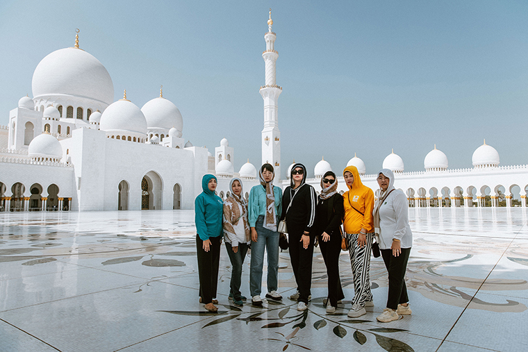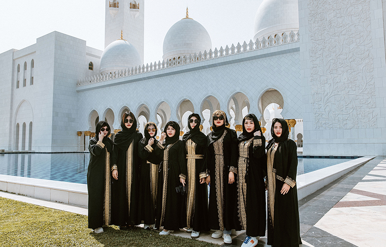 在阿布扎比,谢赫扎耶德清真寺就是阿拉伯人虔诚信仰与物质繁荣的完美结合。洁白无瑕的外观、五彩夺目的内饰,恢弘肃穆,庄严圣洁。听着清真寺传来的祷告声,邂逅穿着传统长袍的阿拉伯人,它的华美和细腻,让绿之韵家人们感觉仿佛走入了一个梦境。