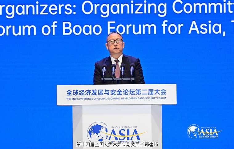 第十四届全国人大常委会副委员长郑建邦代表中国政府在开幕大会上致辞。郑建邦说,当前世界进入新的动荡变革期,正在经历大调整、大分化、大重组,安全问题的外延不断拓展,同发展问题的联系更加紧密。习近平主席先后提出全球发展倡议和全球安全倡议,在国际社会引起积极反响。中方主张进一步落实全球发展倡议和全球安全倡议,共同促进全球发展与安全,共同树牢合作共赢理念。他指出,中国反对将发展议题政治化、安全问题扩大化,希望切实探索合作共赢的路径,推动发展问题重回国际议程核心,加快落实联合国2030年可持续发展议程。反对“脱钩断链”,希望建设开放型世界经济,以正当竞争促进全球交流合作,使科技创新为世界共同发展与安全赋能,为各国人民最大福祉谋利益;完善保障合作共赢机制,构建团结、平等、均衡、普惠的全球发展伙伴关系,推动形成各国政府和国际组织协同、非政府组织参与的安全治理格局。中国将坚持安全和发展并重,统筹应对传统与非传统领域的安全威胁,在努力维护自身发展与安全的同时,积极致力于促进世界的共同发展与安全,不断推动构建人类命运共同体。