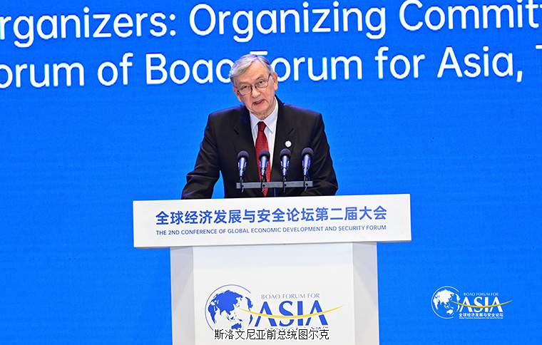博鳌亚洲论坛理事长潘基文致辞时表示,世界经济正面临去全球化的趋势,我们必须着眼于大局,以身作则、采取行动。在日益严重的气候危机问题上,要有更大的雄心和更大胆的行动,以第二十八届联合国气候变化大会为契机,在气候治理、能力建设、气候融资等方面采取更多务实努力;要在国际关系中恢复信任、团结、协调与合作;要在传统和非传统领域创新促进可持续发展和共同安全。习近平主席提出的共建“一带一路”倡议,就是一份团结和建设、而非分裂和破坏的倡议。期待在论坛期间涌现出鼓舞人心、颇具远见的想法和解决方案。