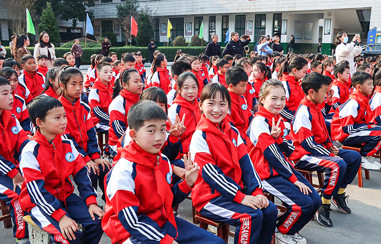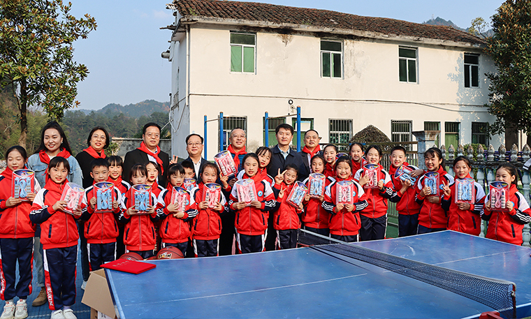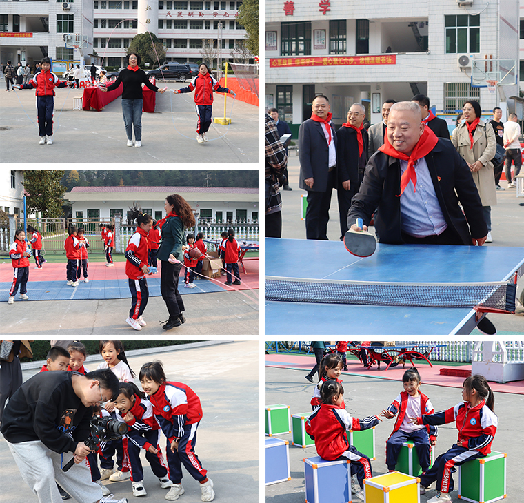 活动过后,胡国安会长带领与会嘉宾共同参观学校,并为学校捐赠了羽毛球、篮球、乒乓球等体育器材和校服。在洒满阳光的操场上,孩子们快乐地跳绳,打羽毛球,在篮球场上,孩子们起跳、投篮,享受着体育运动给他们带来的快乐......