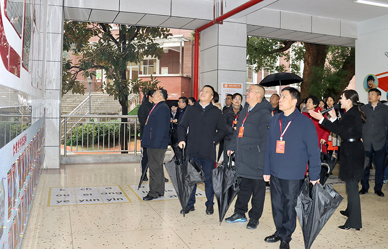在莲湖小学,视察组一行参观了竣工后投入使用的莲湖小学校园基础设施、学校足球场、校园文化展板、学生心愿墙和作品展示墙,详细了解学校办学理念、办学特色和历史荣誉。据了解,莲湖小学扩建项目为雨花区政府打造的光伏发电减轻能耗项目,将太阳能尽数“捕捉”转化为电能,用于学校公共照明。同时,在学校地下车库,安装新能源汽车智能充电桩,在校区内埋地安装雨水收集器,可循环利用供学校进行绿化养护喷灌及道路清洗,全面贯彻绿色节能低碳减排建设理念。