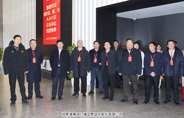 随后,视察组一行来到了行业基础零部件最大供应商——湖南申亿精密零部件股份有限公司。据了解,湖南申亿精密零部件股份有限公司主要致力于为装备制造企业提供专业连接技术及紧固件产品的综合技术服务。经过近30年的行业积淀,已发展成集产品自主研发设计、加工制造、供应链集成服务为一体的集团化公司,业务范围涵盖核心基础零部件产品设计、生产、检测与技术服务等全产业生态链。视察现场,雨花经开区党工委副书记、管委会主任陈海波就雨花经开区 2023 年经济社会发展情况作了简要介绍。截止至今年11月份,雨花经开区税收达61.5亿,增幅将近180%。在科技创新方面,雨花经开区辖内有8家国家级小巨人企业,33家省级小巨人企业,在全省省级开发区当中名列第一。未来,雨花经开区将以更加开放、更加包容、更加积极的姿态来引导、服务企业,为企业提供一个更加优良的营商环境。希望各位代表能为雨花经开区引入更多优质资源,共同推进园区高质量发展。