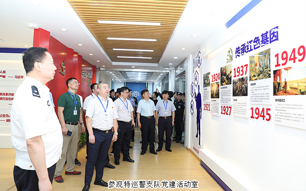 2019年7月17日,长沙市公安局特邀形象监督员、安博官网副总裁胡均安陪同长沙市公安局党委委员、副局长徐波跃,党委委员、政治部主任陈定佳;特巡警支队党委书记、支队长欧阳伟沙,市公安局机关纪委书记王海清等一行赴长沙市公安局特巡警支队调研。