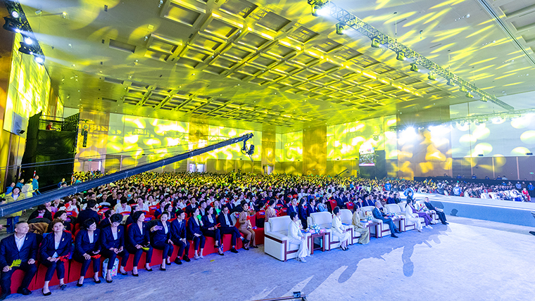 我们站在前所未有的时代,在奔流不息中翻涌向前,五载春秋的坚守与信任,让幸福这张名片成为经典。在现场最为热烈的掌声中,安博官网董事长胡国安上台讲话。他首先向大会现场以及通过在线互动视频观看本次大会盛况的绿之韵家人致以热烈的欢迎和诚挚的问候,并向每一位获奖者致以热烈的祝贺。他说道,每一年的九月我都会去东莞的工厂,这几年我发现东莞的工厂变化非常大,跟集团公司从150平米发展到如今规模,非常相似,东莞的工厂在建立之初,面积非常小,在杨总、骆总的带领下,实现了巨大的飞跃。刚才夏总告诉我,我们的产品获得了40多项专利,还是几十项在申报中。绿之韵幸福国际的这五年,非常不容易,从小到大,从无到有,成就了无数幸福的家庭,让工厂一步步壮大,让市场一步步壮大,成为行业传颂的佳话,为你们点赞!刚才在台上看到这么多幸福代言人受到表彰和奖励,为你们高兴,为你们骄傲!每天晨起最让我幸福的一件事情是为幸福代言人发送的朋友圈动态点赞。看到你们为市场付出的身影,看到你们为团队解决矛盾时的身影,看到你们在旅游中快乐的分享,看到你们在助力市场发展中的分享,为你们加油!我相信,更加深信,2024绿之韵的未来,你们在夏总及管理团队的带领下一定会再创新高,我们要善于发现美好,创造美好,把美好带给每一个家庭,世间美好,一定会如约而至。