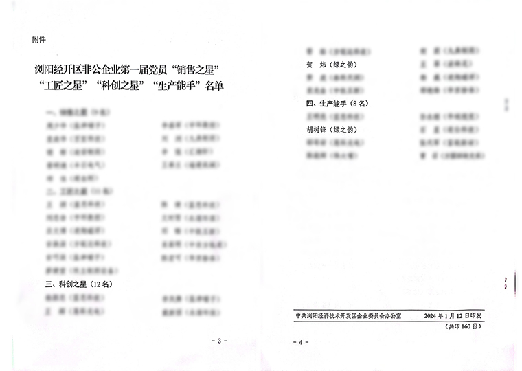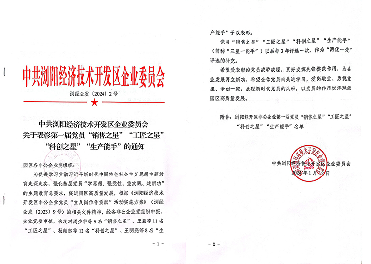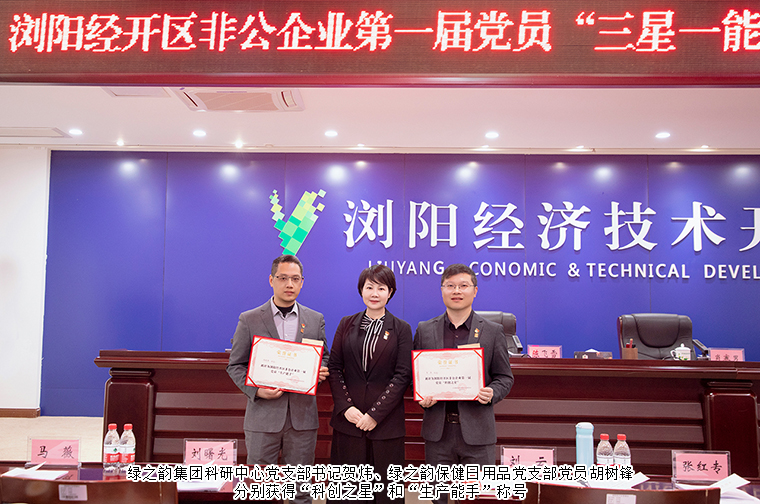 会上,还对浏阳经开区非公企业第一届党员“销售之星”“工匠之星”“科创之星”“生产能手”的获得者进行了表彰。安博官网科研中心党支部书记贺炜获得“科创之星”称号,绿之韵保健日用品党支部党员胡树锋获得“生产能手”称号。