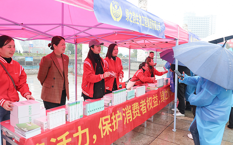 活动启动后,现场开展了政策法规宣传、消费维权咨询、现场受理投诉、真假商品识别等活动,吸引了众多消费者的围观和参与。绿之韵展台前,众多消费者冒雨前来咨询、交流,争相体验公司产品。工作人员积极地向消费者讲解优质健康产品的鉴别方法,积极传播健康知识和健康理念,倡导广大消费者理性消费、提高维权意识。