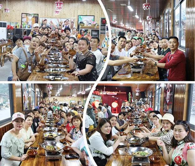张家界魅力湘西国际文化广场,是张家界武陵源景区历史最悠久的演艺剧院,绿之韵家人们在此观看了《马桑树儿搭灯台》《哭嫁》《湘西赶尸》等经典剧目和场外篝火演出,体验了一把土家硬气功和湘西三大蛊迷巫术表演上刀山、下火海。精彩的演出赢得现场绿之韵家人们的阵阵叫好声。