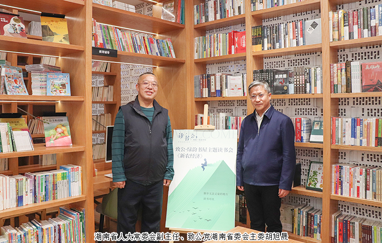 书香助学点亮乡村书屋,教育帮扶助力乡村振兴。走进致公绿韵书屋,书架上各类书籍琳琅满目,一股书香气息迎面而来。胡国安董事长向调研组一行详细介绍了致公绿韵书屋的建设情况。致公绿韵书屋规划面积500余平方米,设置了近100个阅览座位,可容纳藏书50000余册,配置了少儿读物、文学书籍、科学技术、人文历史等各类实用性图书与工具性用书。自试运行以来,致公·绿韵书屋设立绿韵·悦读空间读书会,不定期举行了一系列主题读书分享活动。未来,致公绿韵书屋还将依托书香校园建设,与学校定期开展特色主题研学活动、阅读活动,辐射乡村开展全民阅读,搭建图书分享平台,用阅读传递温暖,让爱心书屋成为乡村文化振兴的“充电站”。随后,湖南省人大常委会副主任、致公党湖南省委会主委胡旭晟与胡国安董事长共同为致公绿韵书屋揭牌。