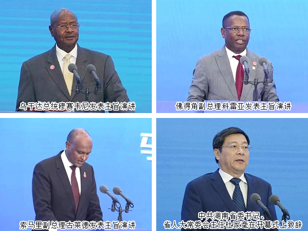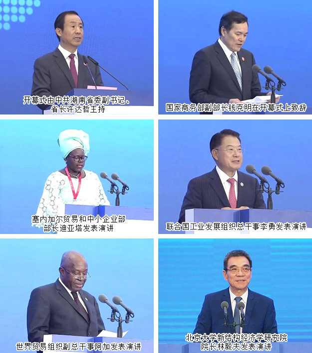 2019年6月27日,首届中国—非洲经贸博览会在湖南长沙开幕。开幕式上,中共中央政治局委员、国务院副总理胡春华宣读习近平主席的贺信,发表主旨演讲,并宣布第一届中国—非洲经贸博览会开幕。乌干达总统穆塞韦尼、佛得角副总理科雷亚、索马里副总理古莱德出席开幕式并发表主旨演讲。中共湖南省委书记、省人大常委会主任杜家毫致辞,中共湖南省委副书记、省长许达哲主持开幕式。国家商务部副部长钱克明致辞。塞内加尔贸易和中小企业部部长迪亚塔、联合国工业发展组织总干事李勇、世界贸易组织副总干事阿加、北京大学新结构经济学研究院院长林毅夫先后发表演讲。